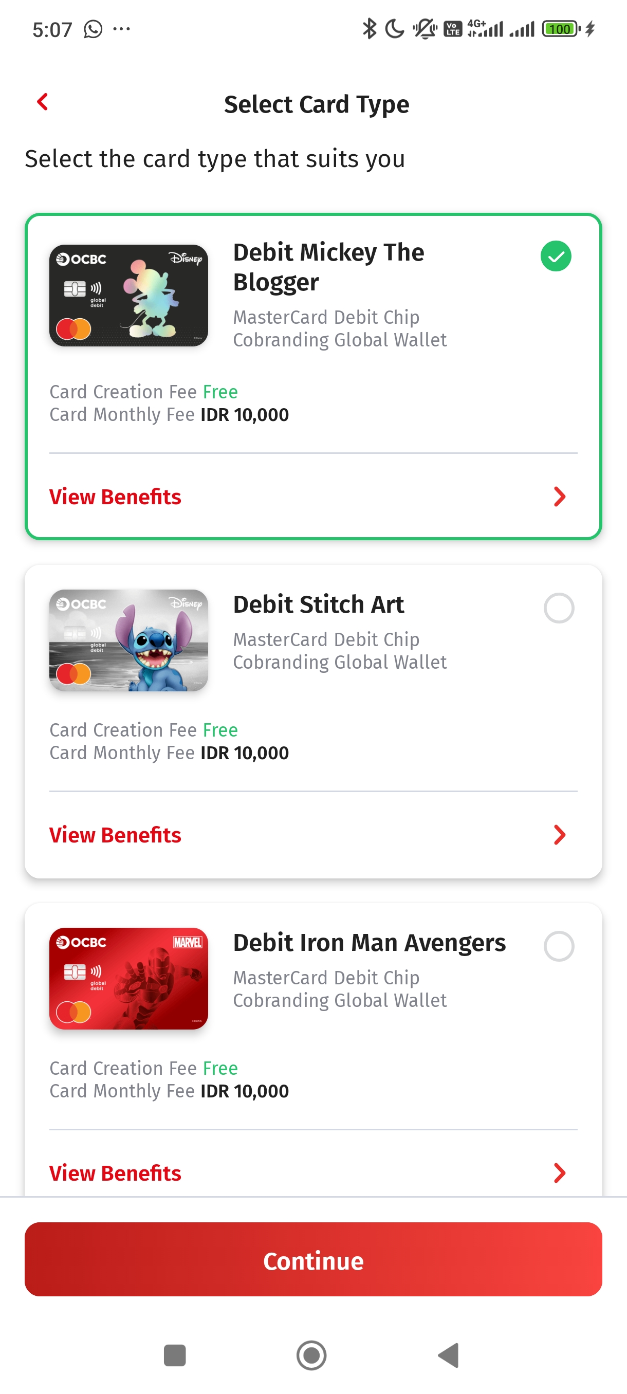 Nasabah yang saat ini hanya memiliki kartu debit GPN saja dan terhubung dengan rekening Tanda 360 Plus dapat melakukan request penambahan kartu Global Debit edisi Disney & Marvel melalui OCBC mobile dengan cara seperti request kartu baru (poin 2)